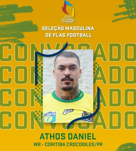 Eu sou Athos Daniel, atleta de futebol americano e flag football, faço parte da Seleção brasileira em duas modalidades diferentes, recentemente fui convocado para disputar o campeonato intercontinental de flag football, em Charlotte no EUA.