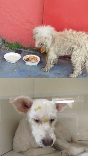 Pérola (nome dado pela nova tutora) foi abandonada nas ruas de Afogados, mas, felizmente, conseguimos um lar para ela. Para que isso fosse possível, foi necessário levá-la ao veterinário, pois estava com muitos nós no pelo, infestada de carrapatos e precisou realizar exames de sangue. Além disso, foi diagnosticada com fungos na pele.