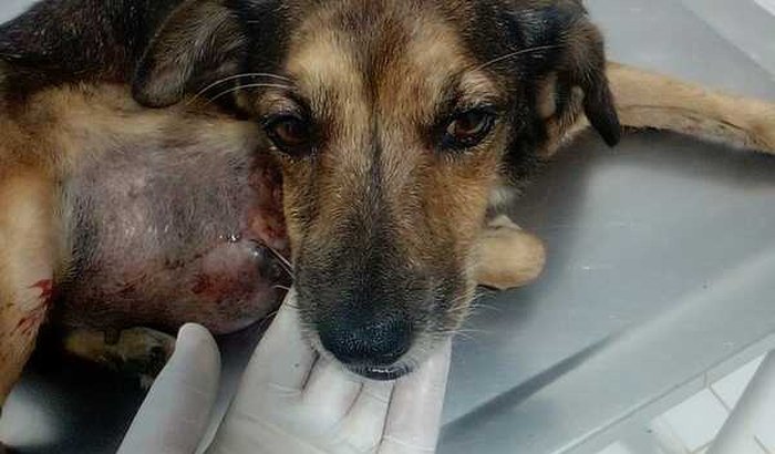 Resgatada e conosco. Precisa de exames e cirurgia.