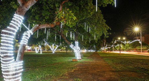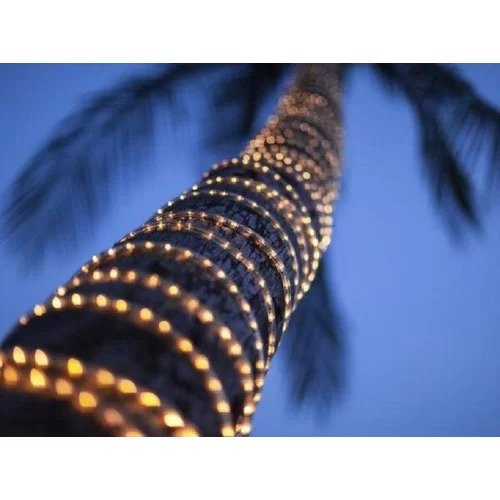 O primeiro objetivo é decorar nossas palmeiras com mangueiras de led. Sobrando, colocamos laços e demais adornos que conseguirmos.