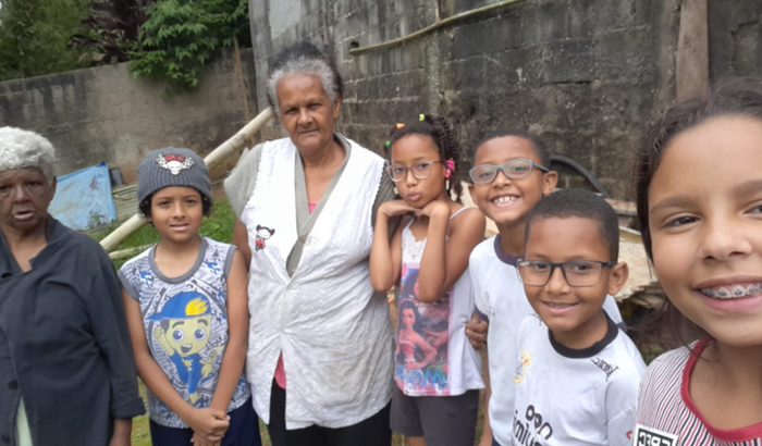 Lucimara que trabalhou a vida inteira, desde os 11 anos, como diarista, hoje não tem condições nenhuma de trabalhar com 5 crianças pequenas e uma irmã especial totalmente dependentes dos cuidados dela.