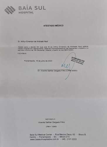 Vou precisar ficar afastado de minhas atividades por um período mínimo de 90 dias.