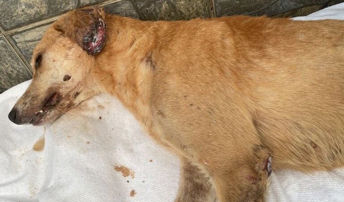 Estamos cuidando de um cachorrinho que foi resgatado da rua por um projeto, e ele está em uma situação bem delicada. O Alemão tem leishmaniose, está muito magro, fraco, com dores, foi atropelado e ainda apresenta sinais neurológicos.
