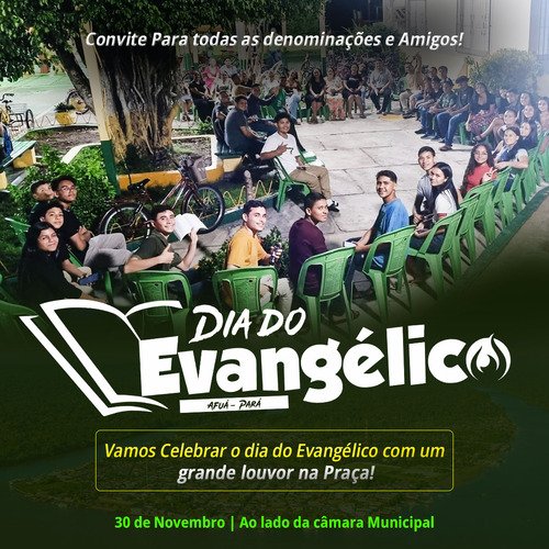 Olá, Nós Jovens/Adolescentes Evangélicos de Afuá estamos promovendo a Comemoração do Dia Nacional do Evangélico pela Primeira Vez em Afuá.