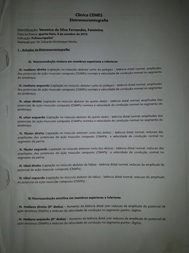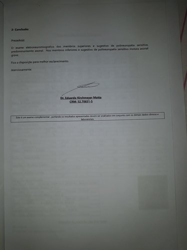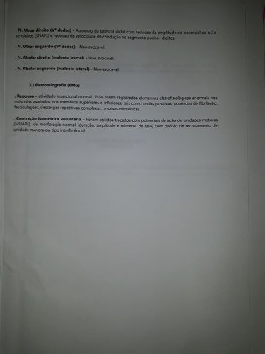 Polineuropatia sensitiva ,predominante axonal nos membros inferiores. Polineuropatia sensitivo motora axonal grave.