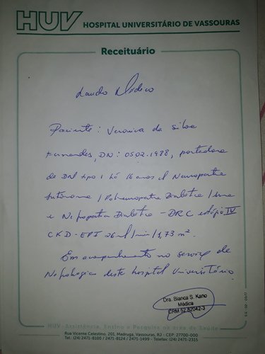 Com encaminhamento para transplante duplo rins e pâncreas.