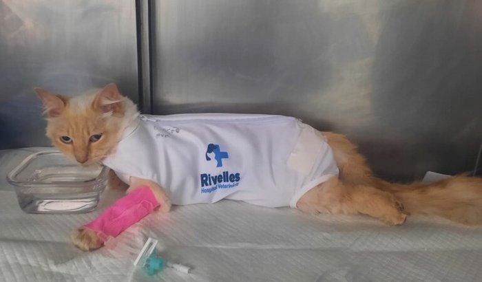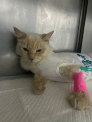 Infelizmente, a Mimi sofreu um acidente grave. Ela ficou presa em uma lança de um portão, se machucou seriamente e precisou ser levada às pressas para uma clínica veterinária, onde teve que ficar internada para receber os cuidados necessários.