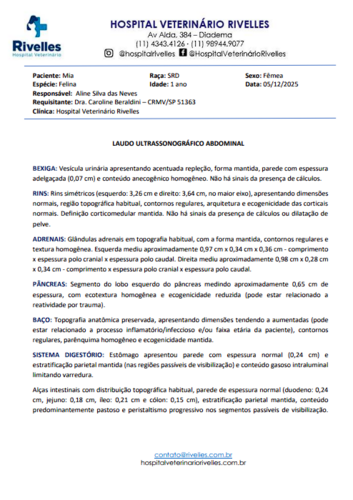 Comprovantes do Hospital Veterinário Rivelles (onde a Mimi está internada):