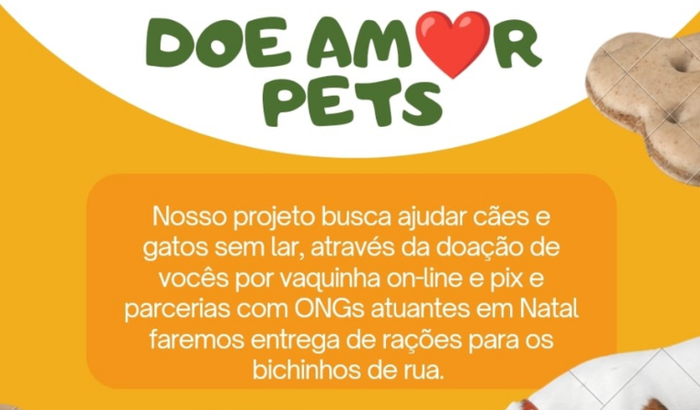 Ola, somos alunos do IFRN zona norte e devido a um trabalho da faculdade estamos arrecadando uma quantia em dinheiro para custear um projeto social que tem como objetivo realizar doações de alimentação/ ração para ONGs de animais que precisam com uma urgência localizadas na Zona norte de Natal.