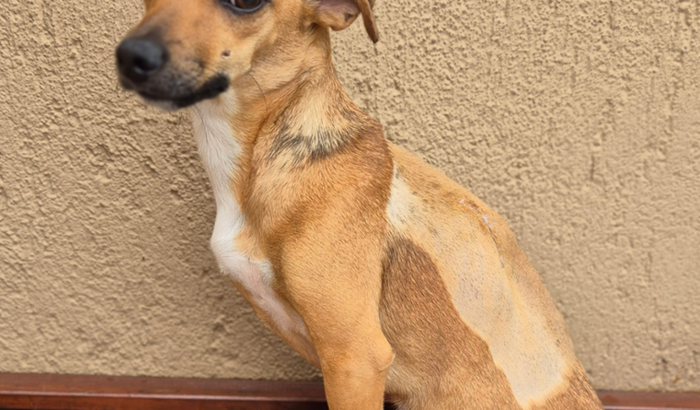 Eu sou a Paçoca. Me perdi durante as enchentes de maio que atingiram a cidade de São Leopoldo, no Rio Grande do Sul, e quando consegui um lar, acabei sendo atropelada. O condutor não prestou socorro! Fraturei gravemente a coluna e somente n ver tudo