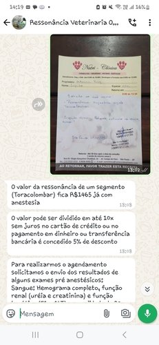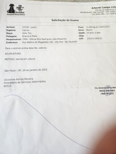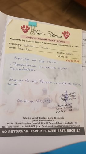 Lupito precisa fazer exames laboratoriais, exames cardiológicos, pois foi solicitada uma ressonância da coluna, afim de identificar a causa da paralisia, e possível cirurgia de hérnia pois a veterinária desconfia que esteja comprimindo a medula.