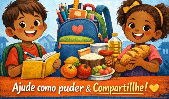 O dinheiro arrecadado será usado para: 📚 compra de materiais escolares🍞 compra de alimentos básicos para crianças e suas famílias