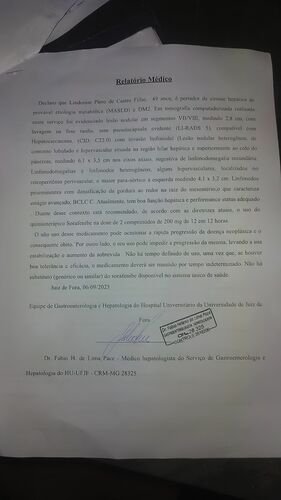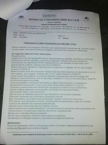 No dia 20/10/23, Lindomar fez uma tomografia e foi descoberto mais um nódulo no pulmão.