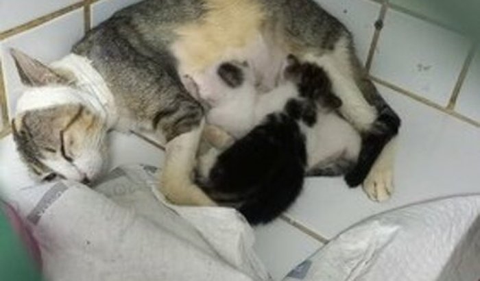 EMÍLIA É UMA GATINHA VÍTIMA DE MAUS TRATOS, TEVE SEU PESCOÇO MACHUCADO AINDA GRÁVIDA E MESMO COM DOR, ASSIM ELA TEVE SEUS BEBÊS E CUIDA BEM DELES. ver tudo