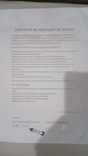 No início de 2022, após ser vendida uma propriedade de família, compramos um terreno no bairro onde residimos. Demos um valor de entrada e seguimos pagando as prestações. Após algumas pesquisas encontramos uma construtora na cidade de Imbé, com a qual firmamos contrato.