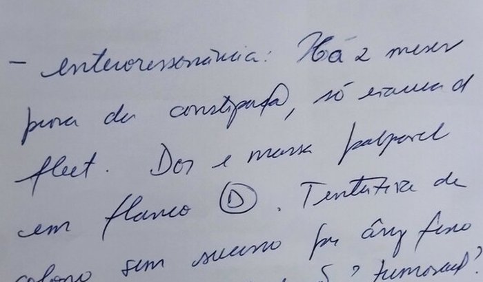 Sou Franciele de Fátima Candido , tenho 33 anos de idade , há mais de 60 dias meu intestino parou com sua função e desde então só vou ao banheiro através de lavagem , o famoso flit , tenho uma doença dentro do intestino segundo a proctologista que me solicitou este exame e no momento não tenho condições de fazer essa ressonância de intestino , estou afastada do trabalho , numa colonoscopia que realizei foi diagnosticado inflamação e infecção no reto e uma obstrução fixa , eu estou aguardando uma perícia de inss e sem condições de trabalhar no momento , desde já agradeço