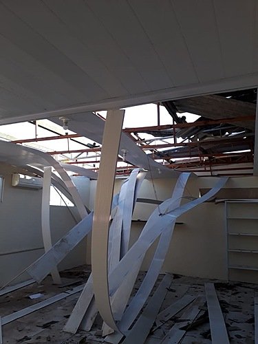 Durante o ciclone, professores e a direção estavam em reunião nas dependências da escola e relatam que foram minutos de terror, com telhas voando, árvores caindo e o teto desabando.