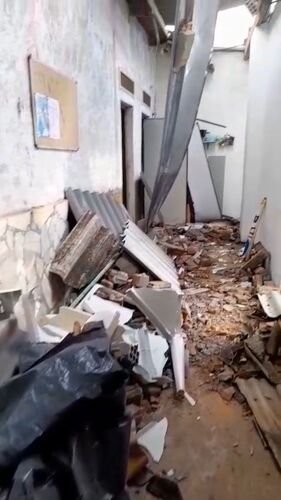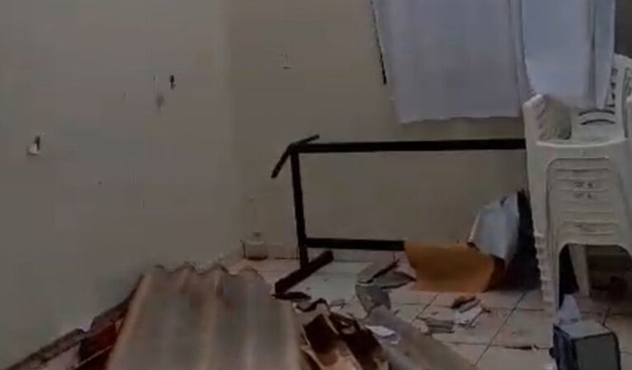 As paredes cederam, o vento levo parte do telhado.