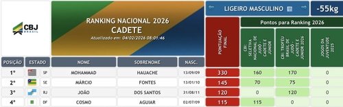 Olá, meu nome é Cosmo, no dia 3 de dezembro de 2025 fui vice-campeão da seletiva nacional de judô, conquistando minha vaga para o estágio internacional que vai acontecer na República Tcheca. É uma competição de muito custo em pouco tempo, mas com muita importância para poder brigar por uma vaga no campeonato mundial de judô, atualmente me encontro em 4° colocado no ranqueamento nacional sendo atleta de base da seleção brasileira de judô.