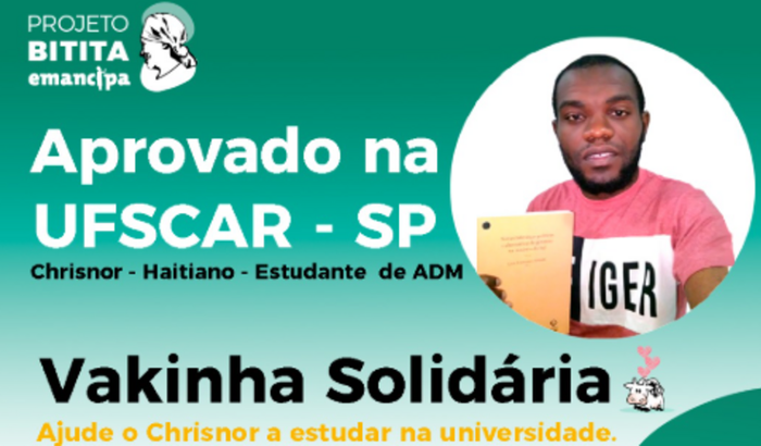 Olá, Eu sou Chrisnor, imigrante haitiano, moro no Brasil desde 2019. Fui aprovado no curso de Administração da UFSCAR. O campus fica em Sorocaba, SP. Preciso de sua ajuda para minha mudança e início dos estudos. Fiz curso de Português e cursinho popular na rede de educação popular Emancipa no Projeto Bitita Emancipa.