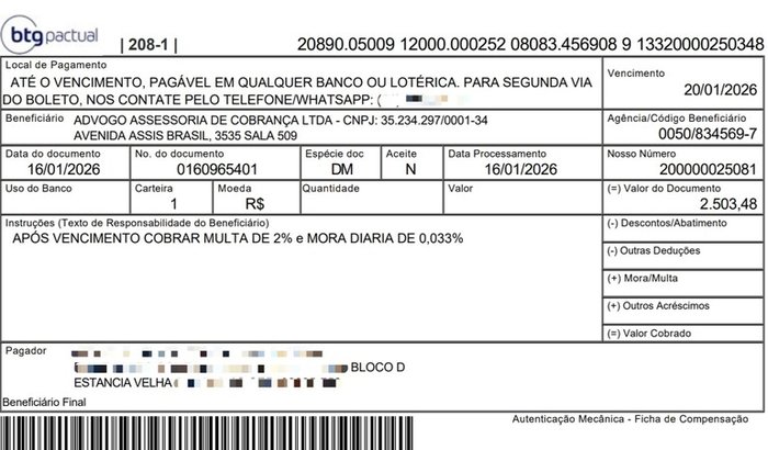 Preciso desse valor para dar de entrada no acordo pois assim não haverá corte no abastecimento de água e consequentemente ajuizamento do meu apartamento. O boleto se encontra atrasado também.