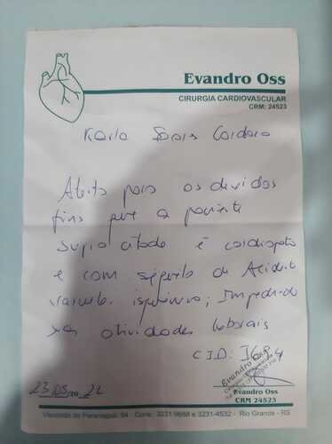 Olá, eu me chamo Clário Cardozo Júnior tenho 23 anos e filho da Karla Cardozo de 42 anos, meu pai Clário Cardozo tem 48 anos, somos do interior do Rio Grande do Sul, uma cidadezinha chamada Santa Vitória do Palmar fronteira com o Uruguai no finalzinho do Brasil, estamos em um momento de saúde e financeiro bem delicado, por esse motivo vim pedir ajuda a qualquer pessoa que possa nos auxiliar a fazer os novos exames e tratamentos da minha mãe, vou explicar tudo. Minha mãe tem problema cardíaco á vários anos e recentemente minha mãe teve 3 AVC's.Minha mãe fez a primeira cirurgia em Agosto de 2007 com apenas 26 Anos em Rio Grande cidade vizinha.Problemas e Diagnóstico em 2007:- Coração aumentado de tamanho as custas de cavidades dereitas;- CIA tipo Ostium Primum;- Insuficência Mitral;Minha mãe foi submetida a uma cirurgia de peito aberto em 2007, onde foram feito os procedimentos:- Plastica Valvar Mitral;- Atrisseptoplastia com interposição de Patch de Pericárdio bovino; Dês desse dia 17/08/2007 minha mãe se cuida e cuidamos dela, alimentação regrada, minha mãe não pode fazer força, não pode correr nem mesmo caminhar muito distante ou rápido. Os remédios para tratamento atualmente para o coração:- Seloken Suscinato de motoprolol 50 mg 2 vezes ao dia a caixinha com 30 comprimidos custa em torno de R$70,00- Regular o colesterol ela toma o Plenace a caixinha custa em torno de R$130,00. Em 2016 minha mãe fez uma laqueadura preventiva, para não correr risco de engravidar pois o coração não aguentaria uma possível gestação e muito menos um parto. Em Abril de 2021 minha mãe sofreu o primeiro AVC, onde foi diagnosticado um AVC Isquemico e um Cisto Aracnoideo no cérebro, minha mãe ficou com o lado esquerdo do corpo parcialmente paralizado e com a memória recente um pouco prejudicada, gastamos um bom dinheiro, um dinheiro que não tinhamos para levar minha mãe na cidade vizinha em Rio Grande e fazer os exames e tratamentos, algum amigos e parentes nos ajudaram, gastamos aproximadamente R$ 2.000,00 (dois mil reais) em deslocamento, estadia, exames, e posteriormente mais gastos que viriam com os tratamentos e medicamentos. Em Maio dia 07 de 2022 minha mãe passou mal no sábado que antecede o dia das mães com tonturas e falta de ar, no dia 08 dias das mães a meia noite tivemos que ir com ela para o hospital, fizeram alguns exames e constataram que ela estava infartando, foi feito o procedimento padrão e deram um coquetel de vários comprimidos e foi encaminhada para Rio Grande, chegando lá o médico dela olhou os exames e constatou que na verdade o que ela teve foram 2 AVC's um no sábado e outro no domingo, minha mãe ficou com uma sequela na fala, a voz bem baixinha e rôca, ela não pode fazer força para falar pois cansa e acarreta em palpitação, tonturas, por conta do coração. Novamente gastamos um dinheiro que não tinhamos e sempre tivemos boas pessoas que nôs ajudaram, mais de R$3.000,00 (Três mil reais) em gastos, minha mãe e meu pai ficaram em Rio Grande por 2 semanas com ela fazendo vários exames e consultas, com neurologista e cardiologista; O remédio Eliquis Apixabana para o tratamento do sangue é bem caro, toma 2 comprimidos por dia e a caixinha com 60 comprimidos custa R$350,00. E minha mãe precisa de um tratamento com uma fonodióloga para recuperar a fala normalmente, e cada sessão é R$150,00. Tentamos encostar minha mãe várias vezes, mas todas foram negadas, minha mãe não pode trabalhar dês de que fez a primeira cirurgia no coração, não pode fazer força alguma, e mesmo depois dos AVC's o governo não encosta minha mãe, entramos com recurso em 2018, 2019 e 2022 foram todos indeferidos (negados), estamos na justiça ainda tentando mas é mais de um ano de espera novamente. Eu Júnior sou filho único, autônomo e trabalho com 3D, sou modelador e escultor digital. Meu pai Clário, também autônomo é Cuteleiro, faz facas artesanais. Minha mãe Karla, faz crochê a mais de 20 anos, faz de tudo em crochê. Temos uma renda que gira em torno de R$3.000,00 por mês quase sempre menos que isso, para cubrir os gastos de alimentação, água, luz, e medicação da minha mãe a gente sempre se vira e da um jeito, mas com os exames e tratamentos novos ta bem difícil de conciliar tudo, estamos sempre com 2 contas de água e 2 de luz atrasadas a uns meses atrás quando atrasou a terceira conta de luz e água, quase nos cortaram o fornecimento de ambas, novamente tivemos que pedir ajuda e conseguimos, somos muito gratos pelas boas pessoas que temos em nossa vida.Para finalizar, minha mãe precisa de novos exames e tratamentos com urgência.- Tratamento com Fonodióloga;- Exame Coração Ecocardiograma bidimensional com doppler a cores;- Exame Coração Ecodoppler de carótidas e ecodoppler de vertebrais com análise de fluxo;- Exame Tomografia do cérebro;- Exame Ressonância magnética do cérebro;- Medicamentos para tratamento dos AVC's;- Medicamentos para tratamento do coração;Custos em exames aproximadamente: R$2.000,00Custos com medicamentos mensais em torno de: R$550,00Custos com tratamento fonodióloga por sessão:R$150,00 Se você puder ajudar com qualquer valor seremos eternamente gratos, muito obrigado pela atenção e pelo carinho.Para mais informações tratar pelo WhatsApp: (53)9 9910-8110