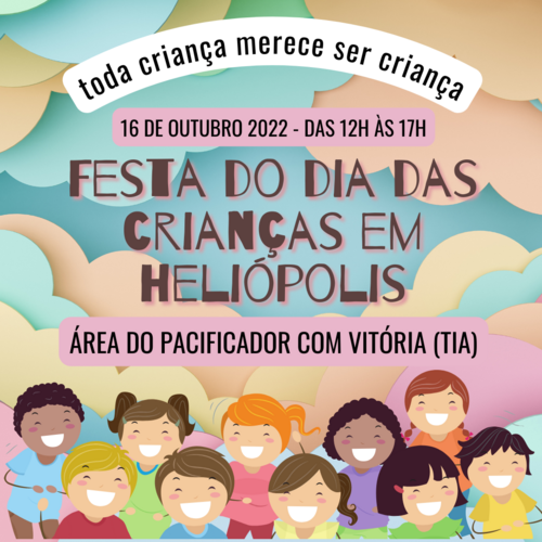 Eu sou Rubê Limeira e junto com a Claudia Botelho estamos juntos na missão em ajudar e apoiar a região do Pacificador em Heliópolis para promover a Festa do Dia das Crianças que vai acontecer no domingo 16 de outubro de 2022.