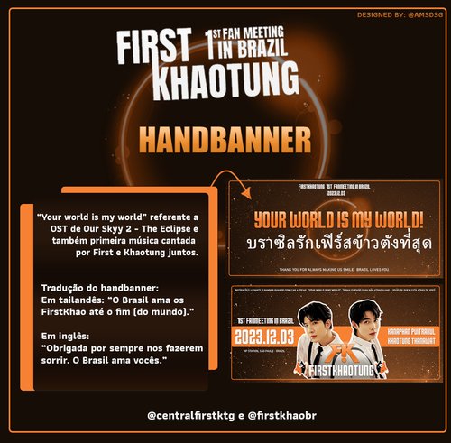 Em parceria entre as fanbases, trazemos a vocês o banner desenvolvido para o fanmeeting dos FirstKhaotung! Para fazer acontecer, precisamos da sua ajuda! Estabelecemos uma meta de produção, mas a mesma pode ser ajustada para mais ou para menos, a depender do andamento do projeto.Siga as fanbases no twitter!