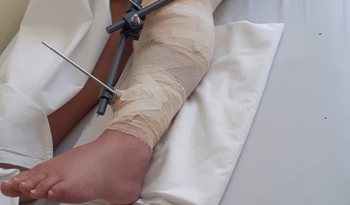 Ela precisou fazer uma cirurgia para colocar o fixador na perna esquerda, ficou com o fixador na perna por 5 dias, até desinchar e poder fazer a outra cirurgia. No dia 05/04, foi realizada a nova cirurgia onde foi retirado o fixador e colocado 2 placas e 12 parafusos na tíbia da perna esquerda.