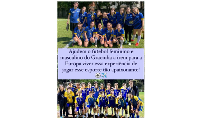 Essa Vaquinha é voltada para os alunos e alunas do Colégio Gracinha que têm o sonho de jogar pelo time da escola na Europa, viver esse intercâmbio esportivo e cultural, ou até mesmo, quem sabe, ser notado(a) por algum olheiro e vir a cursar universidade fora do país.