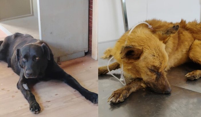 Estes são o Negão e o Graxaim, dois cachorros que foram abandonados na Unidade de Compostagem da Lomba do Pinheiro.