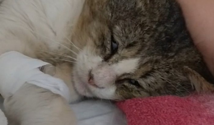 Encontramos o gatinho na garagem do nosso prédio e estava com um machucado aberto e cheio de larvar, miando por ajuda. Levamos ele para o Vet 24 Horas
