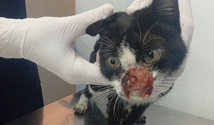 Levamos o gatinho imediatamente ao veterinário, onde soubemos que seus ferimentos eram mais graves do que imaginávamos. Ele precisaria de cuidados urgentes: curativos diários, medicações, exames e acompanhamento especializado para que tivesse alguma chance de recuperação.