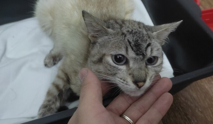 Estávamos a caminho de casa quando vi o gatinho no meio da via, ele se mexeu então voltamos para buscar ele, depois de trazer para casa olhamos com cuidado e vimos que ele está com as duas patinhas da frente fraturadas e não temos como arcar com os custos veterinários. Cuidamos dele como pudemos e teve uma melhora significativa porém precisamos levá-lo ao veterinário para fazer o tratamento correto.