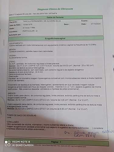 Oi pessoal, me chamo Tarcila, tenho 41 anos, moro em Águas Lindas de Goiás. Infelizmente me encontro em um momento ruim, recentemente precisei ser internada por 6 dias, por causa de intensos sangramentos causados por dois miomas no útero, com isso, também desenvolvi uma forte anemia. Nesse cenário, a decisão médica é a de que eu opere o quanto antes, afinal, estou com sangramentos há mais de 30 dias, apesar dos remédio, não é possível interromper o sangue, apenar contornar um pouco, fora as dores continuas.