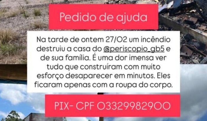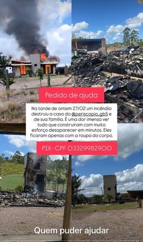 Nosso amigo Edivaldo Bressan Simão, mais conhecido como Perescópio, motorista do Sangão/SC, infelizmente sofreu um incêndio em sua residência.Estamos nos unindo para ajudá-lo a reconstruir sua casa e recomeçar.Qualquer contribuição será de grande importância e fará a diferença na vida dele.