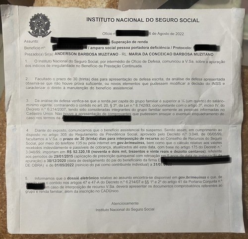 Meu nome é Maria da Conceição Muzitano, estou vindo aqui pedir a ajuda de vocês, esses últimos meses não tem sido fáceis, tenho um filho com deficiência mental, e o inss retirou seu benefício recentemente, ainda fomos intimados a pagar mais de 90 mil do valor que foi dado a ele por direito, por um simples erro no cadastro, eles alegaram que eu agi de má-fé, por conta disso meu marido sofreu um infarto e eu sofro a anos com obesidade e diversos problemas de saúde relacionados a isso e por isso não posso trabalhar (trabalhei anos como domestica) estamos tentando recorrer da decisão mas eles cortaram os benefícios dele, que era o nosso único sustento que tínhamos dentro de casa, já que meu marido está desempregado e por conta do infarto não pode fazer esforço e eu não posso receber pois sou representante legal do meu filho, precisamos da ajuda de vocês, as contas não param de chegar e o INSS pode demorar até 3 meses para responder o processo para reativação, qualquer ajuda é bem vinda, nem que seja compartilhando com seus amigos e familiares, estamos aceitando doações de cestas básicas também. Todos os dias peço a Deus pra que todo esse sofrimento acabe, temos um coração bom e só queremos poder viver com dignidade, agradeço desde já a todos que ajudarem! (Quem criou essa conta foi minha filha)