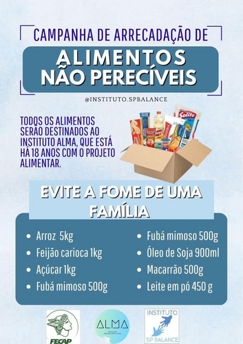 Nosso intuito é arrecadar os alimentos ao Instituto Alma que ajudam a levar comida aos mais necessitados.