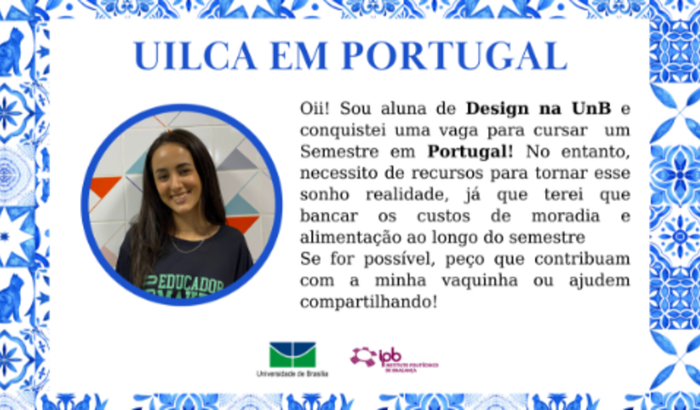 Olá! Para aqueles que ainda não me conhecem, meu nome é Uilca Terra e sou estudante de Design na Universidade de Brasília. Fui selecionada para participar do programa de mobilidade internacional e estudar no próximo semestre em Portugal, mais especificamente na Universidade de Bragança. Felizmente, não precisarei pagar taxas à Universidade de Bragança, porém, enfrentarei os custos de moradia e alimentação ao longo dos 6 meses de estadia.