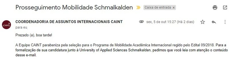 Fui aprovada em PRIMEIRO LUGAR para um edital para estudar ECONOMIA durante um semestre na Alemanha, na Universidade de Schmalkalden (https://www.hs-schmalkalden.de/en/university/faculties/faculty-of-business-and-economics.html)