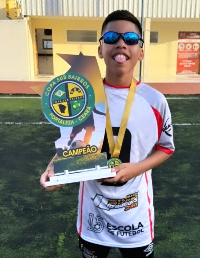 João Gabriel tem apenas 12 anos, mas carrega nos pés e no coração um sonho gigante: ser jogador de futebol profissional. Natural de Fortaleza, no Ceará, ele já é campeão da Copa Sub-Bairros 2025 no Futebol, e agora recebeu uma oportunidade única: participar de um teste de 20 dias no Sport Club Internacional de Porto Alegre, um dos maiores clubes do Brasil!
