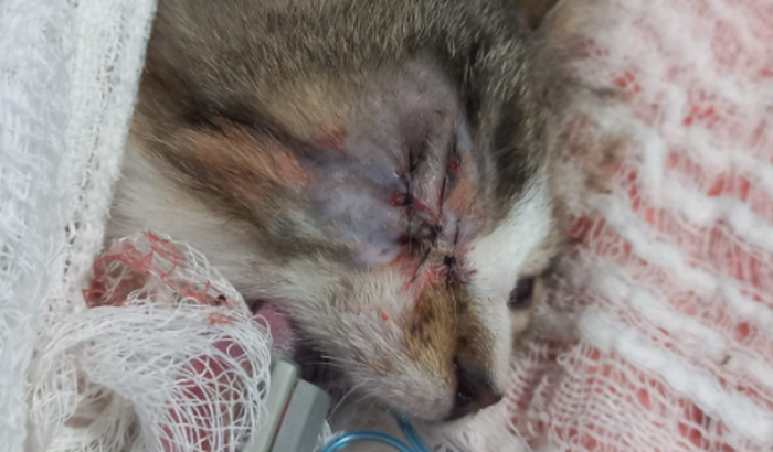 Oi!😺 Meu nome é Jovii, sou um gatinho de três meses, eu era muito sapeca e feliz, moro com minha famÃlia e amigos caninos e meus papais e irmãos humanos. Infelizmente nesses últimos dias minha vida mudou repentinamente, por causa de um petisco, minha irmã canina me mordeu e causou danos horrÃveis em mim, os veterinários tiveram que retirar meu olho direito e outro não enxergo nada. Estou com muita dificuldade pra respirar. Na verdade não sei se vou sobreviver 😿 minha mamãe humana, está fazendo de tudo, já gastou todas suas economias pra me ajudar, mas preciso de fazer alguns exames e também preciso de tratamento em alguma clÃnica veterinária.Eu quero muito viver, sei que agora vai ser tudo diferente, mas se aguentei até agora é porque esse gatinho aqui tem muito pra viver. E ser feliz. Vai, me ajuda aii ficarei muito grato😺