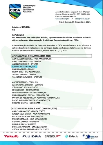 Olá! Meu nome é Juliana Hayashi, sou atleta de natação e fui convocada a fazer parte da Seleção Brasileira 🇧🇷 para participar do Campeonato Sul-Americano Copa Pacífico 2024, que acontecerá em Santa Cruz de La Sierra - Bolívia 🇧🇴, de 05 a 11 de novembro. No entanto, todas as despesas são por conta do atleta, e por este motivo, peço a ajuda de todos para que eu possa participar e representar o Brasil nesta competição internacional.