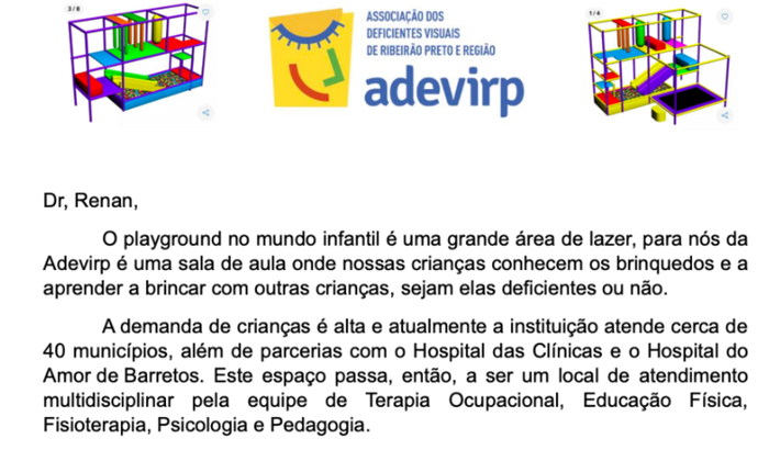 A ADEVIRP (Associação dos Deficientes Visuais de Ribeirão Preto) é uma instituição que transforma a vida de 250 alunos com deficiência visual, proporcionando educação, suporte e oportunidades essenciais para seu desenvolvimento. Este ano, durante o Natal da ADEVIRP, que será celebrado no dia 17 de dezembro, surgiu uma oportunidade especial de trazer ainda mais alegria para essas crianças: a construção de um playground dedicado a elas.