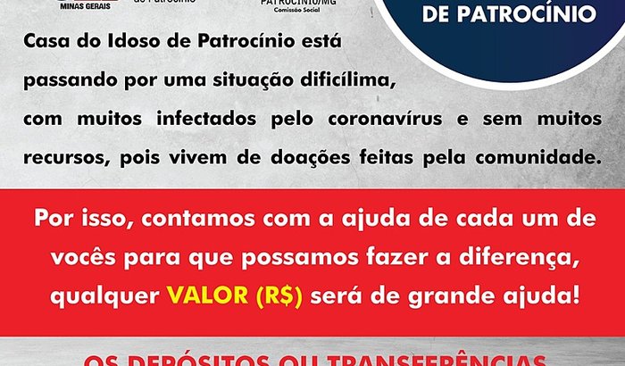 A Casa do Idoso está passando por uma situação dificilima, com muitos infectados pela COVID-19 e sem muitos recursos, pois o recanto vive com grande parte de doações realizadas pela comunidade patrocinense.