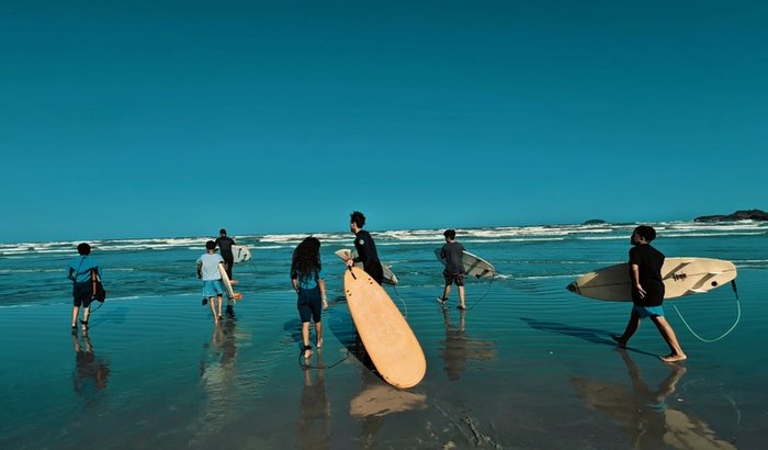 Nosso projeto social de surf atende crianças de 3 a 18 anos na Praia do Costão em Peruíbe, e entrega o surf de forma lúdica e acolhedora para os participantes.