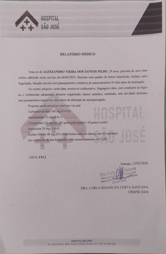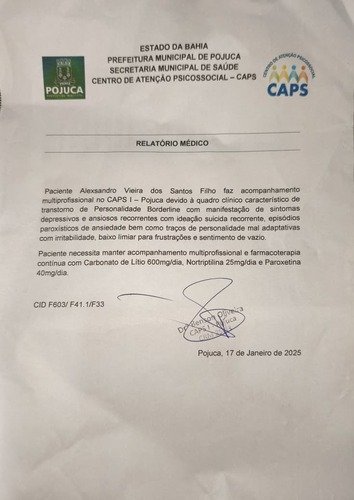 Compartilho esses documentos não para expor a dor do meu filho, mas para comprovar a seriedade do caso e a urgência da internação. Como mãe, é muito difícil reviver esse momento, mas faço isso porque preciso lutar pela vida dele.