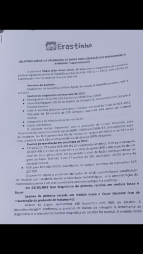 "JUNTOS PELO SÉRGINHO" Minha luta, uma guerra pela Vida começou 02/02/2017 pela terceira vez difícil acreditar que nem quimioterapias, radioterapias e nem um Transplante de medula ossea eu consegui vencer essa guerra, durante esses 5 anos foram muito pouco o tempo onde tudo foi liberado pra mim ter uma vida normal, comer de tudo que mais gosto porque após um transplante de medula ossea existem muitos cuidados e limitações, mesmo eu não podendo ter uma vida normal como toda criança, mesmo eu não podendo ter aproveitado muito minha infância eu me cuidei, fiz tudo corretamente mas em maio desse ano mal nós podíamos imaginar que uma fraqueza nas pernas, onde comecei perder os movimentos das pernas já não conseguia mais andar dependia de ajuda pra tudo da minha Mãe até pra ir ao banheiro. Correndo pra todos os lados com minha Mãe em vários médicos, fazendo vários exames essa triste notícia que essa doença traiçoeira voltou no dia 30/09/2022 no aniversário da minha Mãe recebemos essa notícia DEVASTADORA, aí desabamos. Estou morando em Curitiba, lutando pra viver, como já mencionado somente o tratamento do Car-t Cell é minha chance de cura, estamos travando uma luta com convênio porque o valor do tratamento Car-t Cell é muito alto 2, 5 milhões. Foi NEGADO PELO CONVÊNIO, mas mesmo assim minha mãe não parou de lutar e correr atrás dessa liberação do meu tratamento judicialmente pedimos á Deus que opere um milagre e libere meu tratamento pois sabemos que o valor é muito mas pra Deus nada é impossível. Pra quem não conhece esse tratamento o Car-t Cell ele é novo no Brasil não existe ainda pelo SUS! Preciso morar aqui por tempo indeterminado, tenho uma campanha de arrecadação financeira eu e minha família, minha mãe e minha irmã desde 03/11/2022 estamos residindo em Curitiba por tempo indeterminado, minha Mãe precisa cuidar de mim e minha irmã, sair de nossa cidade pra fazer o tratamento os custos de tudo são muito altos, é alimentação, medicações, produtos de higiene, limpeza, locomoção, e muitas despesas que estão surgindo no decorrer do tratamento e meu plano de saúde é o que recebo de pensão e está vindo coparticipação valores muito alto onde preciso de ajuda também pra ajudar pagar as coparticipação, e fora as despesas que temos na cidade que moramos lá deixamos casa onde tem muitas despesas também pra pagar e pelo fato de minha mãe estar desempregada porque precisa cuidar de mim nesses momentos estamos precisando muito da sua ajuda pelas enormes despesas. Agradeço á Deus as pessoas especiais que estão abraçando nossa causa, venho te pedir seja uma delas.🫂🤝🏻🎗️📢 Continuamos precisando da sua ajuda 🤝🏻. Se puder compartilhe, ajude divulgar minha vaquinha 🤲🏻 Juntos somos mais fortes. Gratidão pela sua generosidade, Deus abençoe.🙌🏻🫂 Doe, compartilhe você tem o poder de Salvar uma Vida, e a minha Vida depende muito de você.🎗️ SE MINHA CAMPANHA CHEGOU ATÉ VOCÊ É PORQUE DEUS SABE QUE VOCÊ PODE ME AJUDAR DE ALGUMA FORMA.🙏🏻🫂❤️🩹 DEUS TE ABENÇOE SEMPRE.🙌🏻
