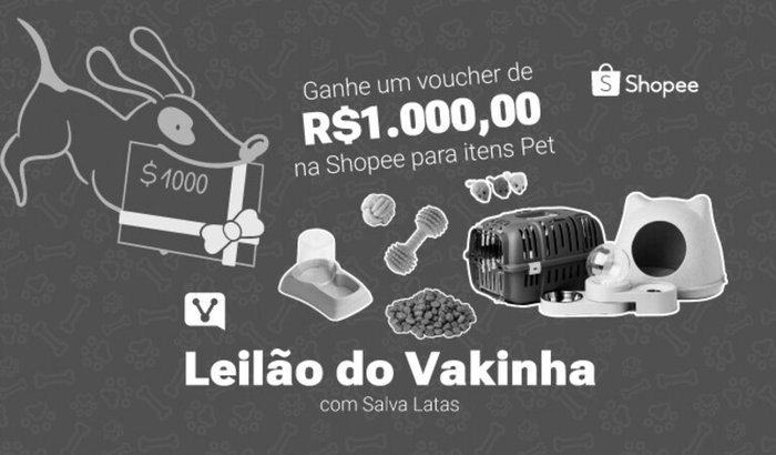 Quem fizer a maior doação, receberá um voucher digital de R$ 1.000 da Shopee para comprar produtos da categoria Pet.