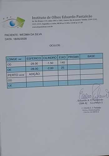 Tenho um alto grau de Miopia mais uma Ceratocone estágio dois as quais são degenerativas fui diagnosticada em 2011 foi visto que eu tinha Ceratocone na Santa Casa RJ e na época estava com 25° e 26° graus de Miopia, na última consulta dia 22/05/2020 consta evolução da Miopia passando pra 28° e 29° perdi a lente do olho direito já faz uns 20 dias as quais eram umas que consegui na Santa Casa em 2017 com um grau bem inferior ao meu 13° mas vinha usando pois não tive como comprar foi uma doação na época pra que eu conseguisse um pouco de visão de lá pra cá venho tentando comprar mas o valor é bem alto ( 3800 o par de lentes Esclerais + óculos de emergência 690 no qual esse vem com um grau que só consegue atingir os 20° pra usar pos retirada das lentes a noite ou em dias de emergencia) como tenho despesas com aluguel, alimenticia, remédios entre outras não estou conseguindo ...